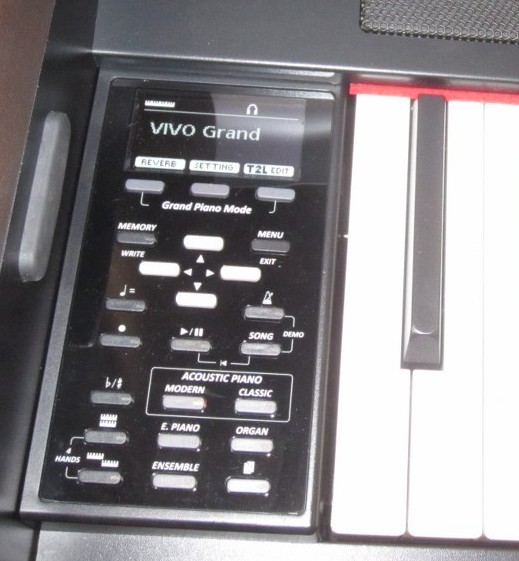 The VIVO home piano series has an LCD display screen and buttons under that screen off to the left side of the keyboard which has become more common lately among many digital piano brands in this price range including Yamaha, Casio, Kawai, and a few others. The LCD display is bright and easy to see. Having all the controls and display screen off to the left side does give the pianos a more minimalistic appearance and a lot of people like that. However, the material surrounding the display screen along with the material surrounding the buttons below the screen is a thin shiny black plastic that blends in with the piano, which is nice but that shiny black plastic can collect and show fingerprints and scratches when pressing buttons along with showing potential dust because that black plastic material is reflective. I would have much preferred a matte black non-glare finish on that panel instead of what Dexibell has chosen to use, and a matte black material (such as what Yamaha & Kawai are using on their digital pianos) would have been a better choice, although the shiny black is a nice color. The buttons below the display screen are easy to press and are light gray, dark gray, and black colored buttons which is fine but the black buttons are difficult to see because they blend right in with the black plastic on the control panel. Those black buttons should have been in an easier to see color such as white, yellow, or red, etc in my opinion. The buttons are what allows you to access all the functions and features in these pianos and although some of the buttons on the control panel are fairly obvious as to what they do, overall they are not very intuitive.