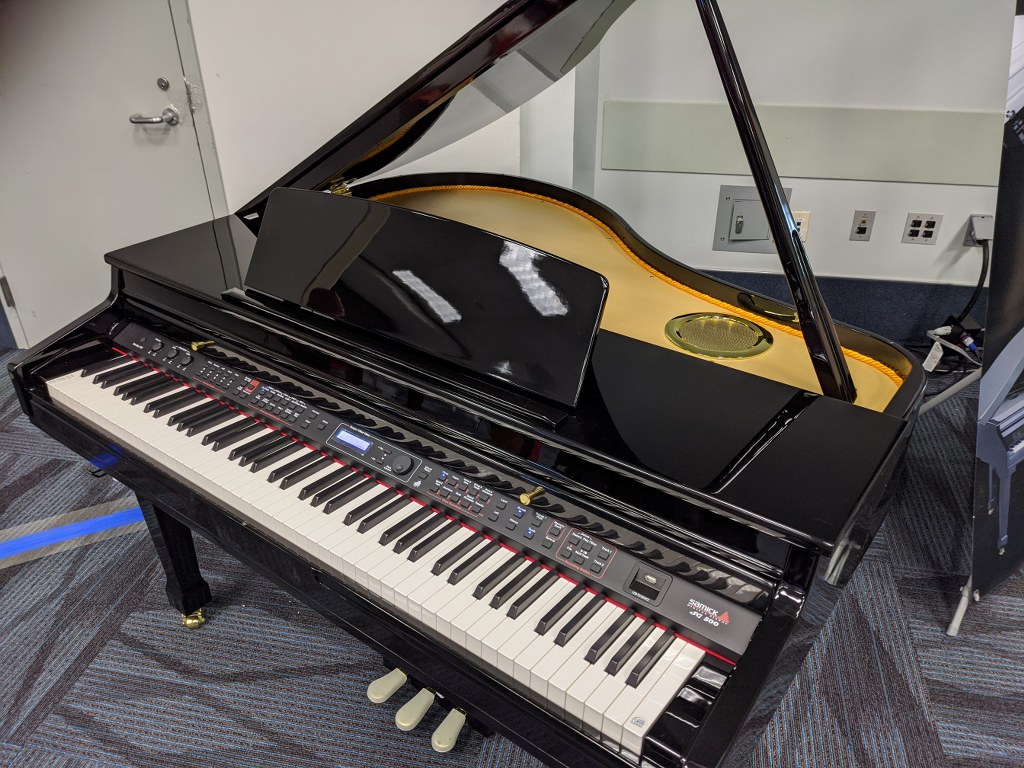 With the newer Grand 500 stereo speaker system being so good, the factory added a new Bluetooth audio connection which allows external devices such as a tablet or cell phone to play their audio music library (iTunes, etc) directly through the piano speaker system via wireless Bluetooth connection so that your piano now becomes your home music player sound system. The Bluetooth connectivity can be used to have constant music entertainment playing in your home, school, church, hospital, or event venue from an iPad/iPhone that does not need to be attached to the piano and can have music played through your piano speaker system from another location.