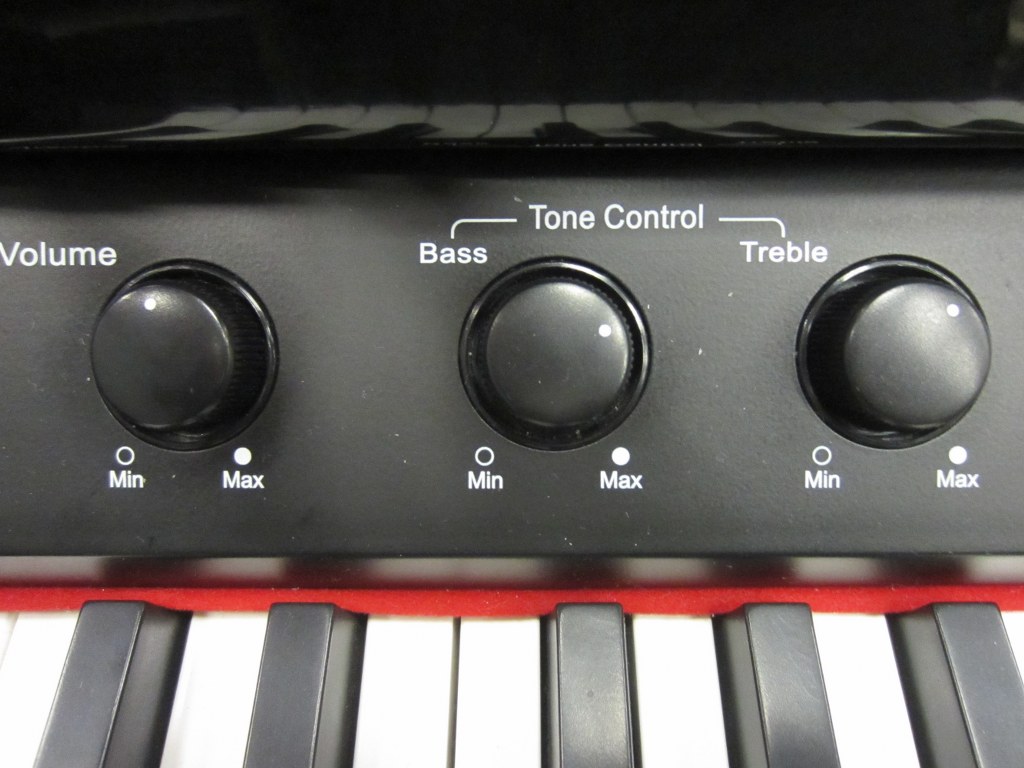 The polished white is elegant and the control panel is also in white, so the entire front of the piano is perfectly matched. On the red one the control panel is black so it contrasts nicely with the red cabinet. I think this was a good decision because having the control panel also in red would have been “too much red” in my opinion. With the inside of the piano having the wood-tone soundboard, it really is an attractive combination of color.