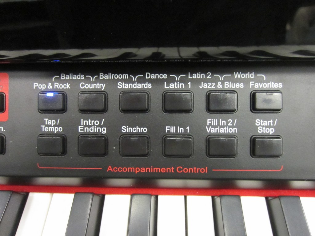 You can even eliminate the melody line of the song by using a “mute function” while the rest of the song accompaniment tracks continue to play and then you become the melody which can help with learning the rhythm and timing of the song in a more enjoyable way. Definitely more fun than a metronome, although for traditional rhythm & timing lessons the Grand 500/SG120 does have a variable digital metronome which can be useful for beginners and more traditional players.