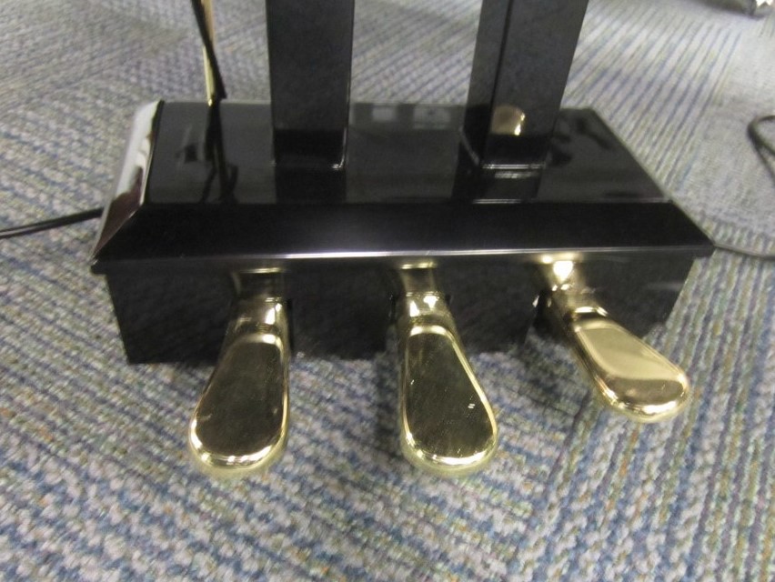 As far as pedaling goes, I noticed that the pedaling was improved with all 3 pedals being operational and functioning more like a regular piano including sustain/damper, sostentuo (middle pedal), and soft (left pedal). The sustain/damper pedal offers more sustain time than in previous models and also triggers half-damper pedaling which gives the player different levels of sustain instead of just on and off as was in the previous models. The pedals are made of brass and look elegant and coordinated with the brass hardware on other parts of the piano. The pedal lyre, which is what they call the triple pedal on a grand piano, looks great and will work fine for most players. There are even better, more upgraded triple pedal lyres on other brands, but you would need to pay quite a bit more money to get that.