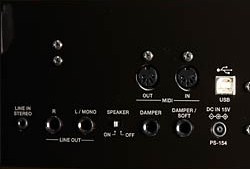 there is plenty of room to put your sheet on it (which is super nice). Otherwise the ES7 by itself comes standard with a black wire music rack as seen in the picture down below. The optional 3-pedal system works very well and looks like an elegant mini-grand pedal assembly, and the piano seems to be solid. Unlike conventional cabinet digital pianos, the ES7 piano top can come off the furniture stand and played separately in a more portable fashion on another stand with a single pedal (included). This is useful if you want to take the piano with you and play it somewhere (a friend or relatives house, a second home, church, school, etc). The internal speaker system is surprisingly powerful with 30 watts of stereo audio power going through 2 good size speakers. Many full size cabinet digital pianos under $2000US have 40 watts of power going through similar size speakers, so for a portable piano the ES7 is comparatively loud and full sounding for its size and gives a satisfying listening experience.