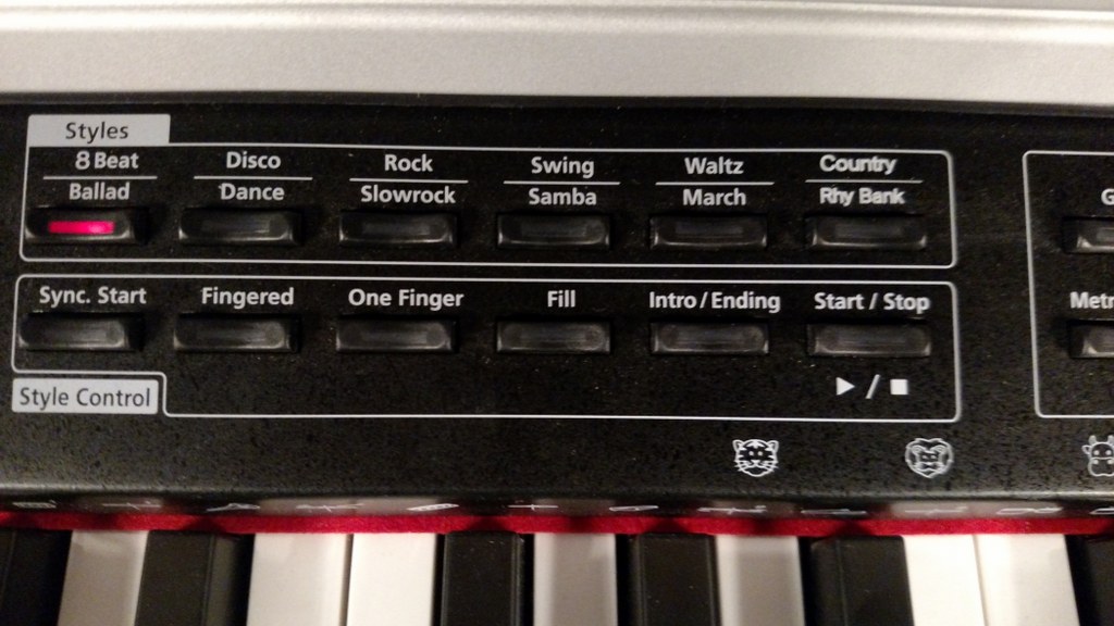 The Kurzweil KA150 does have some fun features built in which include 128 instrument sounds which can be layered or split for any 2 sounds, 11 interactive rhythm and music styles with 15 rhythm banks (total 26 patterns) so that a beginner can play a simple 1-finger or 3-finger chord and the rhythm music styles will fill in with automatic 1-man band arrangements. All of those features are controlled by buttons in the control panel above the keys and are easily accessible. There is a LED display screen with red numbers to indicate which sound or rhythm has been selected and although that LED screen is good to have, it would have been better to get a LCD screen instead which displays actual words, but the LED is better than nothing and more than other pianos have. Although these automated features can be fun to use and help make you sound better than you really are:), few people tend you use them in a digital piano because most people usually want to focus on the piano playing experience and not all the “bells & whistles.”