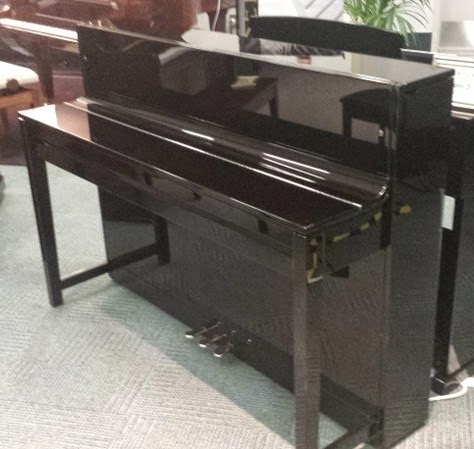 The Samick piano company which has its huge US headquarters in Nashville, TN, is a piano producer of well known acoustic piano brands such as Samick, Seiler, Knabe, Kohler, Pramberger, and others. The Samick piano company has its international headquarters in South Korea and has been producing acoustic and digital pianos for decades and continues to grow and expand as a piano company. The Samick NEO (NEO means “new”) hybrid upright style digital-acoustic piano is Samick’s only upright vertical digital piano they make. This model is also known as the EBONY NEO because it only comes in the polished ebony finish, but for the sake of conversion I will call it the NEO simply because the word ebony in the model number is redundant because as I said, the NEO only comes in the polished ebony finish and no other color.