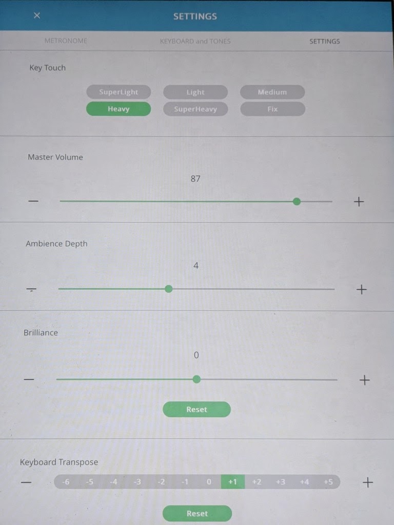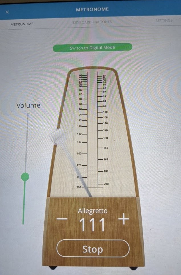 The Piano Every Day app also offers a very cool visual digital metronome for rhythm and timing training for students. This is helpful to visually see the timing of your music and be able to better stay with the beat through visual as well as audible training. There are also various time signature settings available and lots of flexibility within this portion of the app. I will also say that there are some very good 3rd party visual metronome apps in the app store that can be used with any digital piano and in some ways those apps offer even more useable training features than what this app has to offer. So the Roland Metronome feature in the app is not the only game in town, but it’s within their app so it is definitely more convenient that way.The piano itself also can access the metronome feature and then you can hear the metronome counting off the beats and timing, but you don’t “see” the metronome so there is no visual aspect that way. It’s always easier and better to see the metronome moving as well as hearing the beats click to the timing you have set.