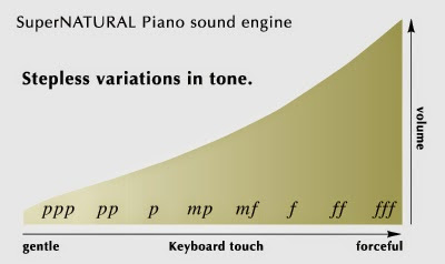 wide and expressive dynamic piano tonal range from mellow to bright depending on how hard you strike the keys, and had long, lush sustain and decay time when using the sustain pedal or holding down a key.