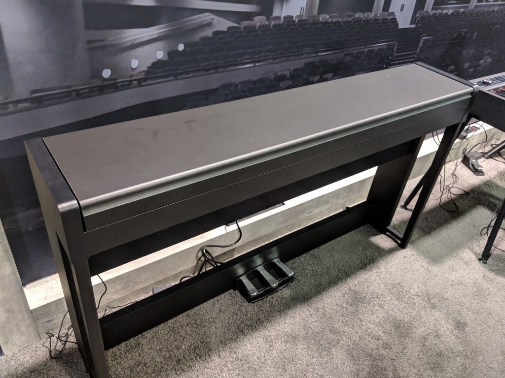 those speakers, the plastic boxes in which the speakers are in, or the fact that the sound is pointing towards the ground under the piano, or perhaps all of those reasons. But whatever the actual case may be, the piano samples don’t sound that great coming through the the internal speaker system and in fact the lower octave bass piano tones come out somewhat tinny and harsh in my opinion and just not full & rich at all.
